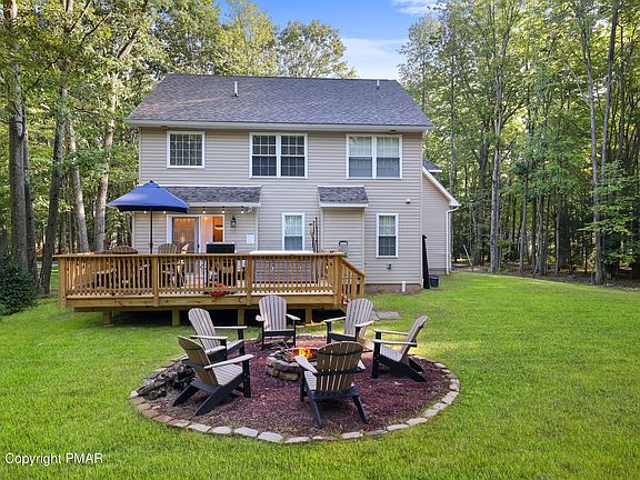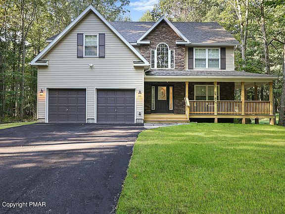 WELCOME TO YOUR POCONO RETREAT! Take A Step Inside This MODERN & EXQUISITE 4 BED/ 2.5 BATH COLONIAL Where You Will Find Coziness & Functionality Has Come Together With Rustic Charm. Featuring An Open Floor Plan, Main Floor Offers A Spacious LR w/ Gas FP That Flows Into The Kitchen Equipped w/ SS Appliances , GRANITE Countertops & Large Kitchen Island w/ Extra Seating. Step Outside To Your Backyard Oasis & Enjoy Entertaining All Your Family & Friends On Your WRAP-AROUND Deck, Relax In The Hot Tub Or Gather Around The Fire Pit. Second Level Highlights Include Primary BDR/ Bath Ensuite w W.I.C, 3 Additional Nice- Sized Bedrooms & Full Main Bath For Your Guests. Located In A Lake Amenity Community, Boast In All the Activities Offered,Such As Swimming, Boating, Fishing Or Have A Fun -Filled Game Night In Your Own Converted Game Room!