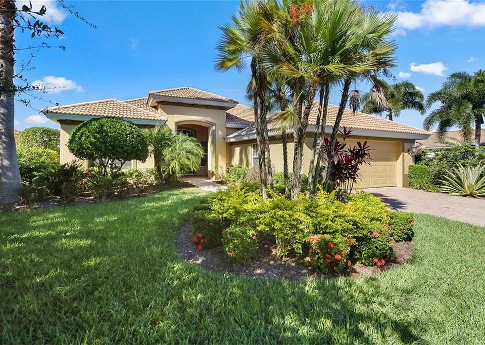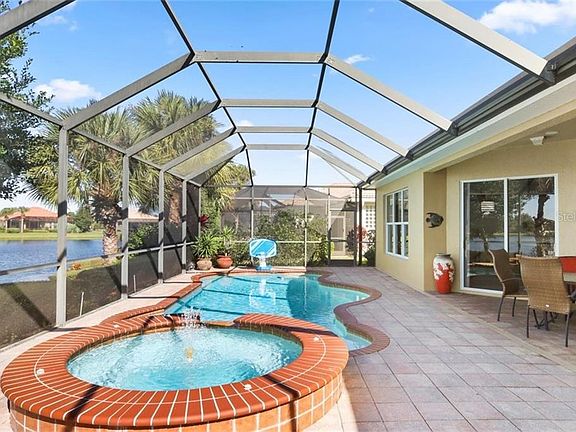 This beautiful home is calling to you with STUNNING LAKE VIEWS & GORGEOUS SUNSETS from your private screened in pool deck lanai. Relax after a day of golf, tennis, or fun at the beach in your heated pool and spa! The home has high ceilings & laminate and tile flooring throughout, with an open split floor plan. The Kitchen has solid wood cabinets, QUARTZ counters, a stainless steel two tray/double door fridge and stainless steel GAS appliances. Natural gas is not common in many communities, and is a loved commodity in Florida! A breakfast bar, and lovely tile backsplash complete the look with a walk-in pantry. The kitchen opens to the family room with several windows that allows in an abundance of natural light into the home. Sliders that lead to the lanai are in the living room, dining room, and master bedroom all showcasing the beautiful lake view. The spacious master suite features double walk-in closets, a bath w/garden tub, dual sinks & a tiled shower. The 4th bedroom makes for a great guest bedroom, or home office/den. Some other features include a laundry room w/ cabinets, plantation shutters, ceiling fans, tile flooring, lanai w/ paver decking, a 2 car garage w/epoxy painted floors lots of storage areas & a brick paver drive way. NEW A/C, pool pump & control board installed in 2018. Seller has made numerous improvements to the house in 2020, including fresh exterior paint. The Venetian Golf and River Club (Golf Club Memberships are optional) is located in North Venice, 10 minutes from the gulf beaches & shopping. Amenities include dining, fitness center & aerobics studio, lap pool, resort style pool & cabana bar. In addition there are 6 Har-Tru Courts & a tennis center, boardwalk with a scenic view of the 70 acre nature park nestled along the Myakka River. SAVE BIG ON YOUR TAXES X 3: HOMESTEAD = 50K OFF TAXABLE BILLSAVE OUR HOMES TAX = LOW YEARLY TAX ADJUSTMENTSHOMESTEAD PORTABILITY = THOUSANDS IN TAX SAVINGS!!! North Venice and Venice features plenty of nearby shopping and new stores making Venice a hot spot for family, outdoor recreation, and high quality lifestyle living, including nearby new baseball spring training camps in North Port and in Sarasota!! Come see this house today!