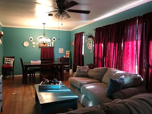 Enjoy outdoor living on your covered front porch, inside large roomy living and dining room. 3 bdrms 1 bath, cute kitchen, office with pantry and huge master bedroom. HVAC little over year old.The double detached garage/storage building/ workshop is sure to please. Garage has separate power and also has water. House is situated on 2 lots.