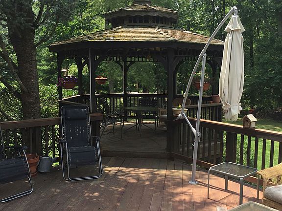 Beautifully Renovated 4 BR, 2.5 Bath Colonial on a Large Lot with an Oversized Deck with Gazebo and Paver Patio overlooking the Stunning Park-like Property Ready for Summer Entertaining. Elegant Living Room with large picture window, Wayne coating and brick wood-burning fireplace, new hardwood flooring, inviting family room, updated Kitchen with stainless steel appliances and sliders opening to expansive mahogany deck and integrated Gazebo, spacious paver patio with stone wall setting. Formal Dining Room. Master Bedroom Suite w/updated bathroom. Additional three bedrooms with ample closets and Full Bath. Huge 2-car garage, spacious basement. This home is located on a quiet country road, close to major highway and shopping. Excellent schools. Brand new furnace! New septic system is being installed!