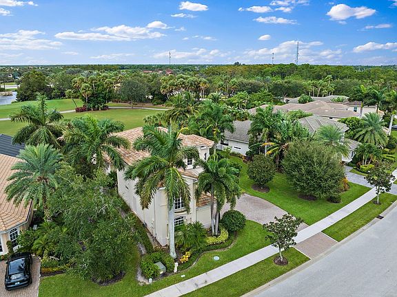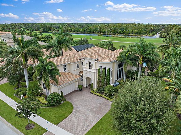 Former Toll Brothers Casa Vicenza model home loaded with extras such as designer moldings, coffered ceilings, window treatments, built-ins, lighting & flooring throughout. Dramatic winding wrought iron staircase leading to the second floor where you will find a loft, 2 BR's and a 3rd room which could serve as a guest room 2nd office or 4th BR.. Custom built-ins in the loft and family room. Kitchen features top of line line appliances and a 6 burner gas rangePanoramic golf course views with no homes in view. Resort styled heated salt pool & spa,, summer kitchen and covered porch make this an ideal for entertaining..Jupiter Country Club amenities: championship golf course, tennis, pickleball, fitness center, resort pool, pro golf & tennis clothing store, and fine dining options. Contemporary elegance and charm exude both outdoors & throughout this architecturally designed 3 BR plus office & loft, 3.5 Bath Toll Brothers model home. First Floor: From the moment you step through the front doors you'll be greeted with designer coffered ceilings, window treatments, hardware, lighting & flooring throughout the living areas. Designer inlayed marble tiled entry, beautiful architecturally designed spiral staircase, office with built-in shelving, guest bath, full size laundry room with sink & built-in shelving & 2.5 car garage with plenty of storage space. Custom designed full wet-bar, formal dining & living room. Open-spacious family room overlooking gourmet chef's kitchen & breakfast area all offering stunning tranquil views of the lavishly designed private spa-like fenced in pool & separate oversized spa, covered sitting area & built-in summer kitchen.