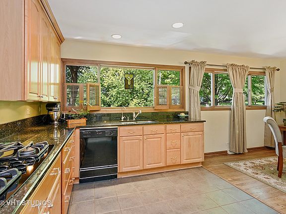 Open floor plan with volume ceilings, updated kitchen and NEW extensive landscaping and hardscaping! Freshly painted in 2017 - dining room, kitchen, foyer/hall, master suite and laundry. This home is a hidden gem within walking distance to downtown Village amenities and pieces of history throughout - fireplace mantle & locks on front door from Old Cook County Courthouse! Peaceful master suite in lower level with exterior access to back patio and completely remodeled master bath! 3 additional bedrooms upstairs with 2 more updated baths. Vaulted & beamed great room that leads to a large balcony overlooking a serene, fenced and private backyard with stone patios and extensive professional landscaping!