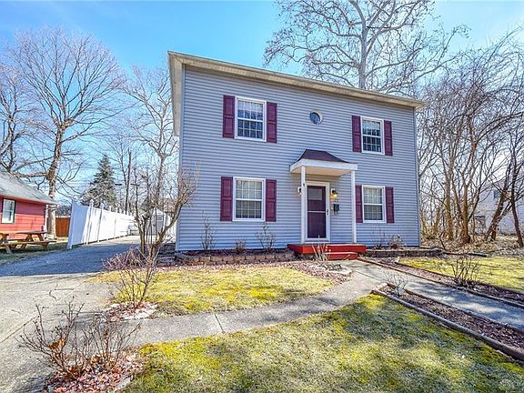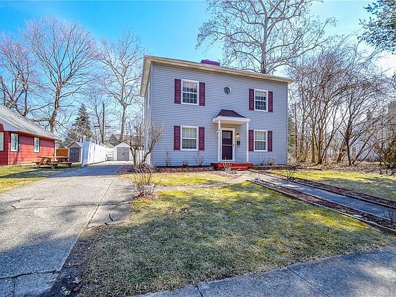 Be part of Troy's history with ownership of this steel constructed home by Hobart. One of a handful left since the 1930's. Updated interior includes carpet 2012, living rm laminate floor 2017, gas furnace 2017, remodeled kitchen 2018 with all appliances staying, water heater 2019, updated light fixtures. The main house roof 2016, flat roof above garage and house 2018. 3 bedrooms are located upstairs with full bath, plus doorway access out to garage flat roof where you can enjoy the sunshine. There's a first floor laundry and full bath, the basement is divided into 2 large rooms for living space or spacious storage areas. Outside yard fencing for privacy and 2 storage sheds. This is a solid built home ready for a new owner. Great location, just minutes drive time to shopping, restaurant, grocery or just walk to the downtown amenities or parks. Agents * see agent remarks *