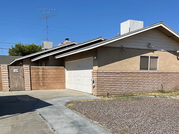 Clean Modern 4 Bedroom, 2 bath, 2551 sq ft home $1900 per month on a 12 month lease. The home is conveniently located at 129 S Sunland Street in the southeast section of Ridgecrest near downtown and close to shopping. The spacious home features a back to back living room and family room with a two sided gas fireplace separating the two. The kitchen offers generous cabinet space and counter tops. Modern appliances in the form of a Gas Range and Oven, Refrigerator/Freezer, Trash Compactor, Garbage disposal, Dishwasher and a second smaller beverage refrigerator. Adjacent to the kitchen is a full dining room with additional cabinetry. The four bedrooms are generous in size. (See diagram In pictures) The master bedroom includes a bathroom with a shower and separate bathtub, double sinks, and toilet. The second bathroom has a combination tub and shower, toilet and two sinks. The half bathroom, toilet and sink with medicine cabinet is located next to the laundry room that has hookups for either a gas or electric drier, and a washing machine. The garage is a finished garage with generous cabinet space and counter tops. The garage has its own rooftop evaporative cooler for the hot summers. Parking for 1 car in garage, two in the driveway plus street parking in the front of the house. The house is centrally cooled by a relatively new evaporative cooler and is heated in the winter by a relatively new gas furnace. The home has an easy to maintain front yard and a side yard that is separated by a block wall and a privacy gate. The home has been well maintained and is managed by the long term owners for a quick response to needs of the tenant. The home has a pet door for an approved dog. You may contact the owners by email directly for an appointment to view the property in person or for further information. In your email enquiry, please state pertinent background information and the number of occupants and their relation to you. The preferred method is to complete your initial application through Zillow and request a showing. The owners will then contact you and set up a viewing of the property. 12 month lease. Tenant pays all utilities such as electricity, gas, water, garbage, internet and phone. Tenant responsible for yard maintenance. Owner supplies an electric lawnmower. Grass area is serviced by an irrigation system. Owner pays for sewer service. There is an additional deposit of $200 required for an approved pet. No smoking inside home.