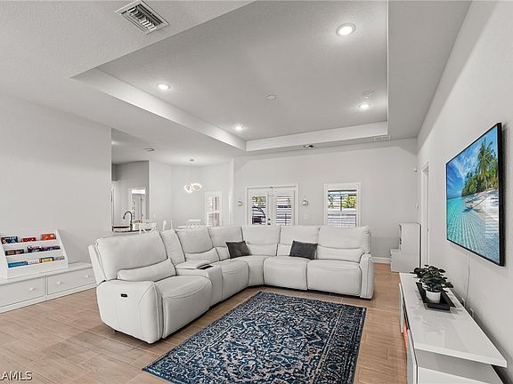 Stunning Pool Home in SW Cape Coral built in 2023 with over $150,000 invested in every conceivable upgrade! Sellers are motivated to sell! Featuring 4 Bedrooms and 3 Full Bathrooms with a 3 car garage all under 2,276 SF living space. Open Floor Plan with high vaulted and tray ceilings, wood tile flooring throughout, updated fans and lighting, custom plantation shutters, and upgraded appliances. Spacious kitchen with espresso cabinetry, lots of cabinet and countertop space, and Samsung Smart Appliances all around 1yr old! Pantry with built-ins by Closet Design. Ideal for families and visitors, this home boasts 4 large bedrooms and split family plan. Master suite overlooks the pool and private backyard. Master Bathroom features 2 walk-in closets in the hall, dual vanities, a walk-in shower, and a 3rd closet / very large linen! Each bedroom is great size ensuring everyone has their own space to relax, play, or turn a room into an office or home gym. POOL TIME! Brand New Pool 2024 loaded with a huge pool, water emitors, LED color changing lights, a Hot Tub with waterfall, new pool cage, upgraded child pool fence, and extended brick paver deck that spans the entire length of the home! Patio deck for relaxing poolside! Your Private OASIS is complete with a new vinyl privacy fence and Ring Security cameras all around. Safety, insurance savings, and convenience - newly installed motorized hurricane screens on the patio and easy to use accordion shutters on windows and doors. Upgrades Added 2023-2024: landscaping, concrete curbing, low voltage landscape lighting, 2024 pool (pool, spa, deck, and cage), privacy fence, security cameras, MyQ Smart garage doors with auto lighting and cameras, garage upper storage racks, plantation shutters, Samsung Smart Appliances, Samsung Smart Washer & Dryer, lighting and fans, closet built-ins, accordion storm protection, and Storm Smart hurricane screens on patio. BETTER THAN NEW - All the benefits of a new home with the more upgrades than any builder home would ever have!!! NOT IN A FLOOD ZONE & NO flood insurance required. Located in the desirable SW close to shopping, dining, events, Starbucks, Target, Publix, and the area’s top-rated restaurants. GOLFERS - Very close to Palmetto Pines Country Club and Coral Oaks. BOATERS - there are several boat ramps in the area giving you Gulf Access to beaches, fishing, boating, and waterfront dining and resorts.