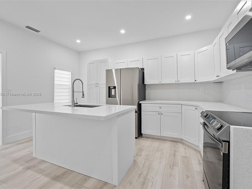 Quartz countersElegant finishesModern kitchenBeautifully tiled bathroomsDurable laminate flooringStainless steel appliances