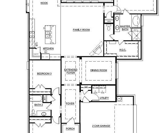 MLS# 14474096 - Built by Antares Homes - Ready Now! ~ Step inside from the long-covered porch to be welcomed into the expansive foyer with boxed ceilings. Located off the foyer is the formal dining room. A spacious family room features a beautiful natural stone-surround corner fireplace. The kitchen has stainless steel appliances, a corner walk-in pantry, and a central island while the breakfast nook provides access to the large, covered patio. The master bathroom is complete with a dual sink vanity, large garden tub, separate walk-in shower with a seat, and a large walk-in closet. Two additional bedrooms have easy access to a full bathroom and linen closet, and a full-sized utility room.