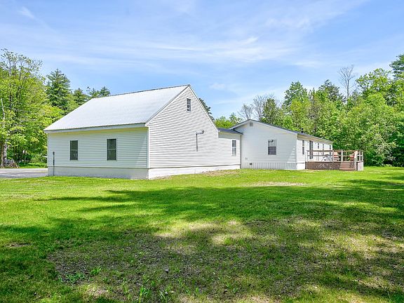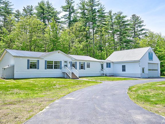 A fantastic option for home ownership in Conway! Large double-wide mobile home on its own land and slab foundation, with a huge attached 2-car garage and workshop, with storage space above. The yard is a nice and level .77 acres with a circular driveway and plenty of space to play. Built in 2002, the home has great features such as a metal roof, vinyl siding, one-level living, open floor plan, double mudrooms, and a sunny private deck off the back. Inside is spacious and welcoming, with laundry off the mudroom, vaulted ceilings, an open eat-in kitchen, new carpet, new paint, and 3 nice-sized bedrooms, including a primary bedroom with a step-in shower and large soaking tub. New water treatment system, hot water heater, washer dryer, and range. Updated 4 bedroom septic design (not installed) with room for expansion/garage conversion if desired. Centrally located just off of West Side Road, but tucked back on a quiet street, you'll love this easy location! Photos are from previous listing and do not show some new appliances.