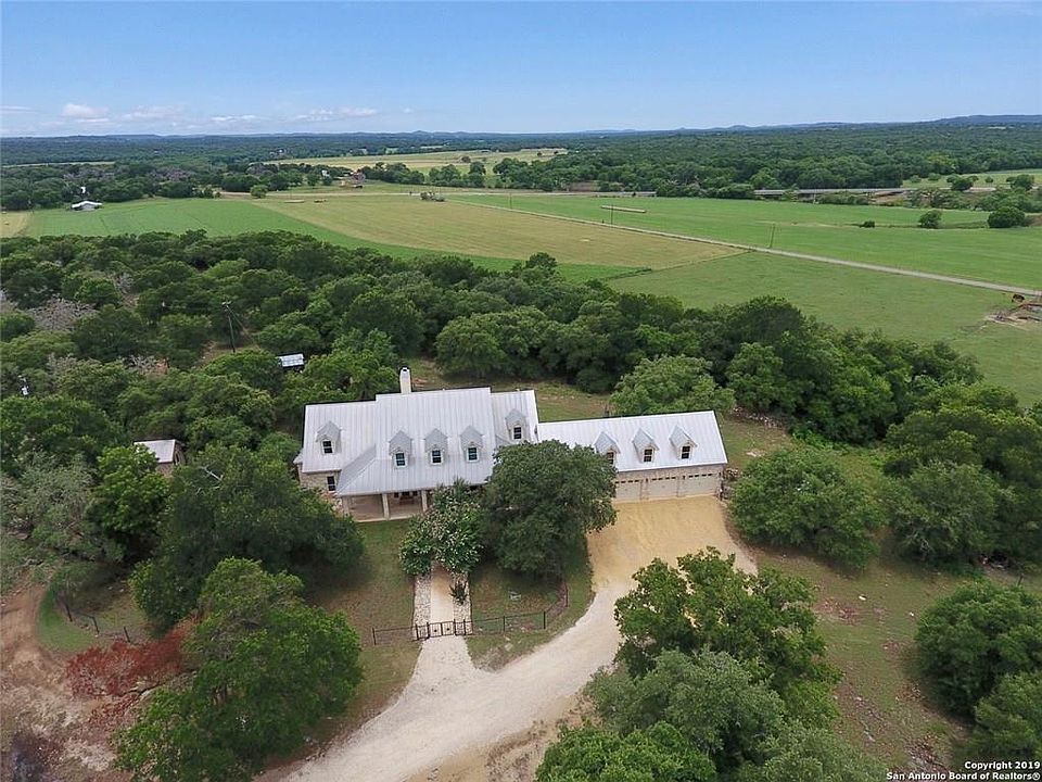Priced Below Appraised Value-Boerne Unrestricted 6.27+/- Ag exempt acres offering privacy & beautiful mature oaks. 4 Bedroom & 4 Bath w/Master on main level + Study. 10 ft ceilings, stained concrete floors down & hand scraped hickory wood floors upstairs. 2nd Master ensuite upstairs. Soaring ceiling in living w/rock fireplace. Gourmet kitchen w/stainless steel appliances, 6 burner gas cooktop, double ovens, granite counters, built in bar w/sink. 1500 sf 4 car attached garage w/walk up storage. 20 x 45 patio. Easy Guadalupe River Access.