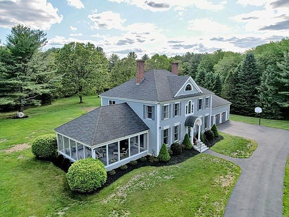 This gorgeous Colonial home sits majestically on over 6 acres of land, creating a park-like feel that lures you in! Spend summer days relaxing in the 24' x 23' screened-in porch w/ double doors from both the LR & family room w/ fireplace, a peaceful place to take in the beauty that surrounds this amazing home. Over 3000 square feet of above ground living space, w/ over-sized windows throughout allows the home to be flooded w/ natural light. Kitchen has granite c-tops, peninsula seating as well as an eat-in area, leading to the massive deck overlooking the tranquil back yard. Family room off the kitchen, proper LR & DR w/ fireplace, 1/2 bath, separate office/playroom as well as laundry/pantry room all on the 1st floor. 2nd floor houses 4 bedrooms, primary w/ en-suite w/ jacuzzi-style tub, over-sized shower w/ glass door, dual sinks, 2nd full bath plus 1 bedroom w/ 3/4 en suite bathroom! Finished steps to 3rd floor & over-sized 24' x 36' three car garage, creating ideal storage spaces!