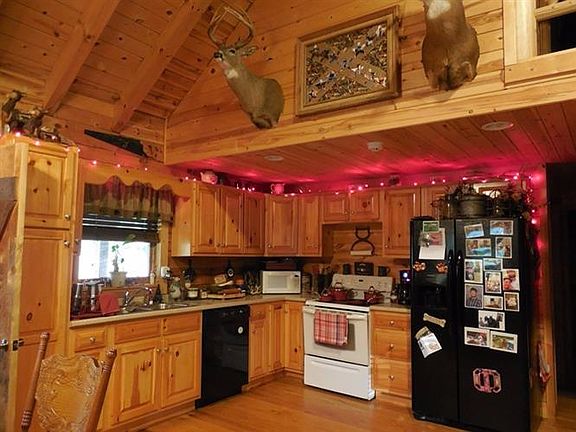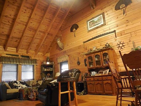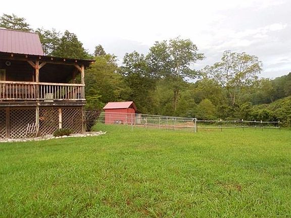 1 1/2 story log home, first floor bedroom, exposed beams in living area open to kitchen, lots of cabinet space. Two bedrooms upstairs with half bath. Covered porches, county water, septic system, fenced pasture with small barn for horse, balance wooded with deer and other wildlife. 10 miles from West Liberty, 10 miles from Mountain Parkway & Campton. Please note correct mailing address is Hazel Green, KY 41332 - property is located in Morgan County