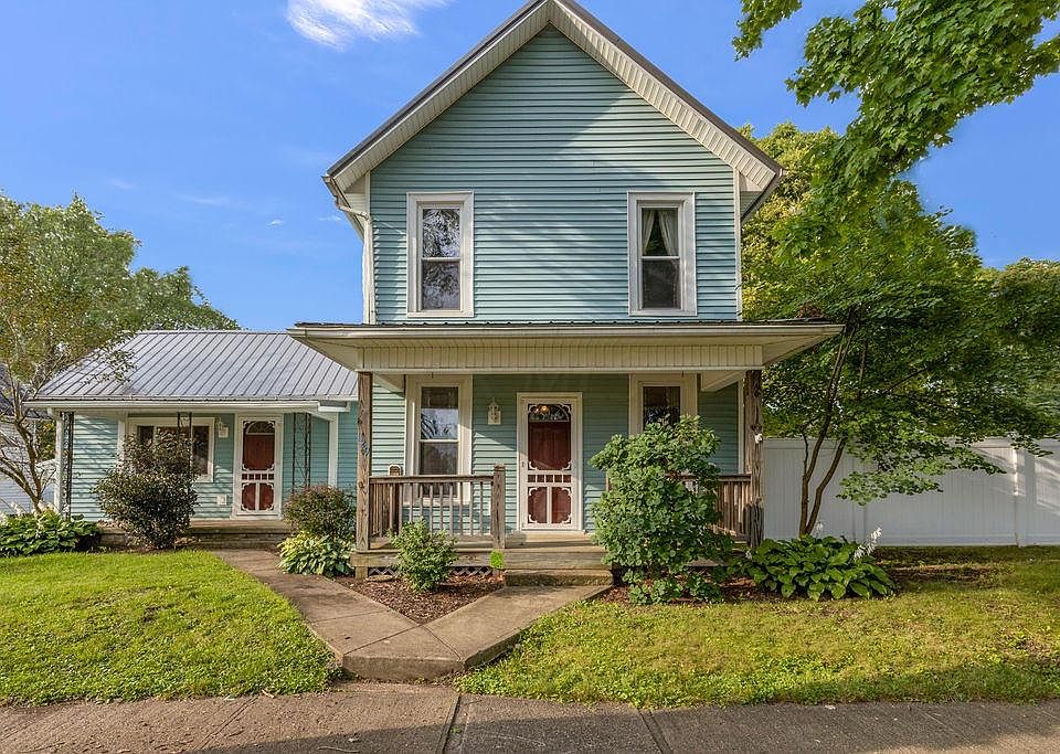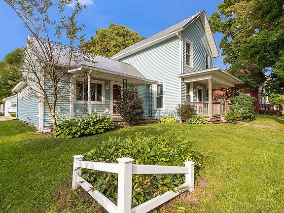 What a great spot! Easy living with everything remodeled and updated for you. Sit on the porch and relax or walk to games, shopping, Village events like Homecoming, schools and enjoy the plusses of village life. First floor master suite, 1st fl laundry plus 2 more bedrooms and a bath on the second level. ¾ fenced yard, convenient parking plus a garage. New metal roof in 2019, Furnace 2011, Central AC 2019, New water heater in 2020. Kitchen remodeled in 2018, windows new in 2011, carpet is brand new throughout! A lot to offer! (PLEASE observe Covid requirements and wear masks inside the property and wipe off anything you find necessary touching with the antiseptic wipes provided)