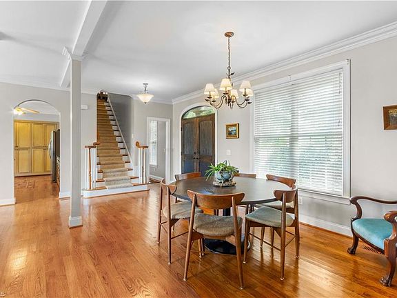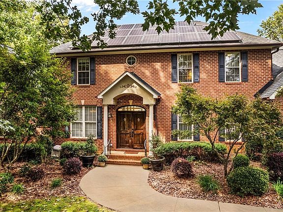 Buy this gorgeous custom-built brick home and enjoy quiet cul-de-sac living in Country Club Hills. Open floor plan with breakfast nook, living room with fireplace, dining area-all have large windows with views of the expansive yard and natural swimming pool. Great drop zone & hidden kitchen desk area. Primary suite has trey ceiling, W/D hookup in WIC, luxury bathroom, garden tub and dual vanities. Upstairs includes 3 BRs w/2 full baths, laundry, art room and flex space currently used as exercise/guest/playroom. Total of 5 WICs and 3 laundry. Screened porch & back deck provide additional places to relax or entertain. Built in gas grill. Basement is additional living space w/ interior & exterior entrances to full kitchen, BR, WIC, full bath, LR w/ fireplace, laundry, wine grotto, w/ access to pool & covered patio. Garage workshop table conveys. Energy Saving solar panels. Hot tub hookup on the patio/pool area. Storage unit/playhouse. Beautiful community with very low HOA.