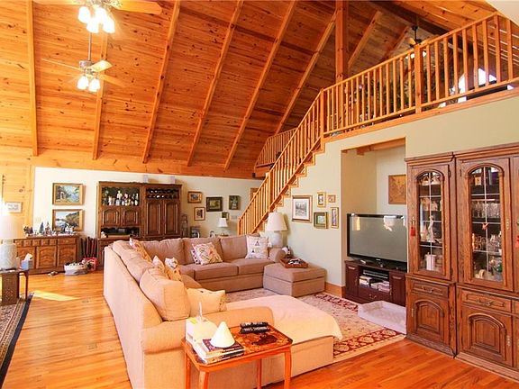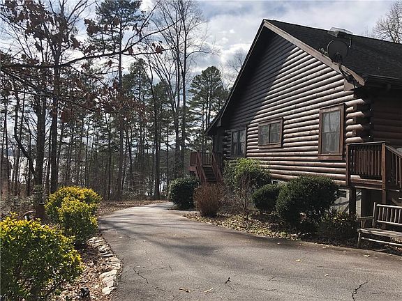 Great rustic log home nestled in the woods on 1.42 Acres overlooking Lake Keowee. This home has been recently resealed and re-stained. The large family rooms features a large open plan with rock fireplace. The dining area is open to the kitchen and a screened in porch is off the dining area with access into the main living area. The master is on the main level with a walk in closet and large master with separate shower, jetted tub, and a large vanity. Two additional bedrooms and bathroom is located on the main floor. The loft area is perfect for an office or play area. It has two storage areas off the loft area. The detached garage has room for two cars and the apartment above the garage is perfect for a man cave or in-law suite. The home is situated across the street from the lake. A circular driveway is in place and extra parking areas.
