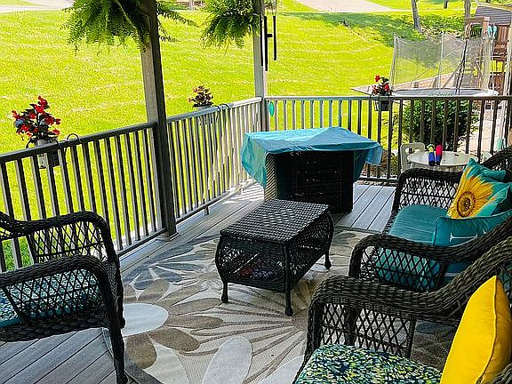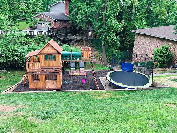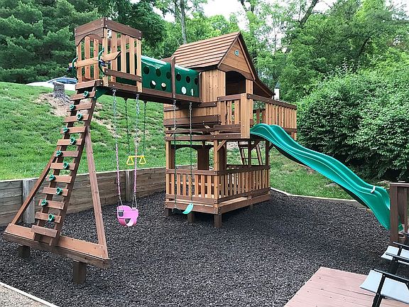 Outside features a new composite decking front and side porch. Rubber mulch, fully functioning play area. Everything stays. Back of the house has a screened in back porch and 3 newly stained decks attached. Realtors are welcome. Call or text 74O-5I6-8444.