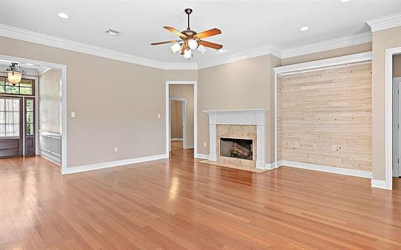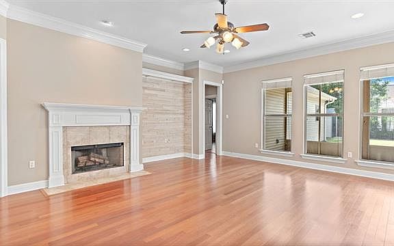 Beautiful home with ideal open floor plan, high ceilings, crown molding & hardwood floors throughout. Chefs kitchen w/ gorgeous custom cabinets, granite countertops & stainless Thermador appliances. Living room features custom accent wall w/ distressed natural wood. Escape to the serene master w/ tray ceiling & large master bath w/ dual vanities & hydro tub. The backyard is perfect for entertaining w/ screened porch, oversized patio & mature landscaping. Plenty of closet space. Community pool. A must see!