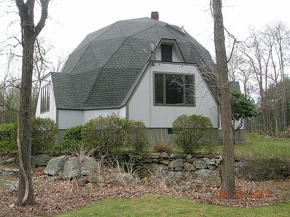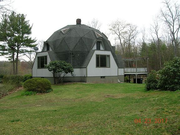 A home for the truly discriminating buyer. Absolutely unique Geodesic Done style home which offers an open LR, DR and FR that features a soaring ceiling and unique sky lights and balcony. This area also features a wood stove which heats the entire home. All of the bedrooms are spacious and just bursting with light from the ample sized windows. The kitchen offers a dining area, walk-in panty which also houses the laundry and a slider which accesses a very large and private deck in the back of the house. The basement is appropriate for finishing additional rooms or hobby area or workshop. The basement floor is 6" thick (no cracks) and there is a bulkhead which leads directly to the back yard. The finished yard is very spacious with many unique flower plantings and fruit trees. There are two vegetable gardens with underground water access. The back of the property is wooded. The oversized garage can park 4 cars and has a second level which can be finished off or used for storage.