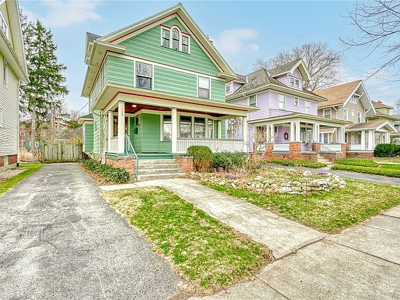 FANTASTIC Sibley Tract home located 2 miles from URMC! This one is STEEPED in ORIGINAL features and charm! Step into this CLASSIC colonial w/RICH gumwood trim, inlaid hardwood floors, INCREDIBLE coffered ceiling, BEAUTIFUL stained-glass window & GORGEOUS leaded glass pocket doors! The front entrance hall leads into the LARGE living room with a wall of windows & gas fireplace w/built in leaded glass bookshelves! The formal dining features a built-in window seat w/storage & access to the "Butler's pantry". The kitchen area has plenty of room for eat-in options, or to expand cabinets & working space! There's the cutest 1st floor powder room that's tucked between TWO staircases leading to the 2nd floor! Upstairs is a SPACIOUS landing w/4 bedrooms and a full bath! Enjoy the views from the SLEEPING PORCH, or head to the 3rd floor for more ENDLESS possibilities! The lower level has a finished room for additional rec space/music rm/art studio/ETC & a convenient powder room too! Outside you can watch the world go by on the AWESOME front porch w/wainscoting ceiling or relax in the fully fenced yard w/a 2 car garage! This home has been LOVED by the same family for the last 51 yrs! This area of the SIBLEY tract is a tightknitt, stable community w/an appreciation for the area & homes! Don't let this OPPORTUNITY pass you by! Delayed negotiations Thurs 4/10/25 at 2PM