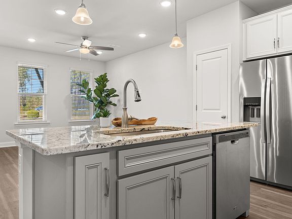 Welcome to 129 Trailview Lane, a stunning townhome in the heart of Nexton and a true golf cart from everything this community has to offer! This meticulously maintained 3-bedroom, 2.5-bathroom home offers a perfect blend of modern convenience and comfort, with a prime location just moments from Brighton Park Boulevard and the additional shared community amenities in Midtown. As you enter the home, you will notice the spacious main level is filled with open-concept living, featuring a dining and kitchen area ideal for entertaining. Enjoy the upgraded kitchen with granite countertops, shaker cabinets, subway tile backsplash, stainless steel appliances, and a gas range. The kitchen flows seamlessly into the living and dining spaces, which lead to a porch with a serene pond view.Additional main-level features include a half bath, a drop zone area near the entry, and an attached one-car garage, a rare find in this neighborhood! Heading upstairs, you will be in awe of the spacious primary suite, a true retreat, offering a spacious walk-in closet and a luxurious bath with a tiled walk-in shower, double vanity, and upgraded finishes. Two additional bedrooms are down the hall, plus a full bathroom, and a laundry room completing the second floor. You'll also notice the upgraded of light gray LVP flooring throughout! Enjoy the outdoors with dual porches one screened and one covered with peaceful views of the pond. This townhome in Brighton Park Village offers a maintenance-free lifestyle with landscaping, lawn care, exterior maintenance, and irrigation covered by the HOA. Residents enjoy access to community amenities including pools, pickle ball, tennis, basketball, a gym, parks, playgrounds, recreation trails and so much more! Plus enjoy the convenient proximity to the I-26 plus downtown Nexton's numerous shopping and dining options.
