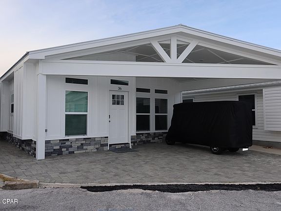Welcome to a rare opportunity to own a brand-new Venture Out home! This under construction property boasts an array of features that will surely captivate you. This 3 bed, 2 bath has a great open floor plan, LVP flooring, quartz countertops and gorgeous finishes. You can enjoy the comfort and convenience of this home all year round with the porch and covered parking. This property is not only a perfect second home but also an excellent investment opportunity. As part of this golf cart community, you'll have exclusive access to over 300 ft of white sand beaches on the Gulf of Mexico, as well as access of the Grand Lagoon. Embrace a resort-like lifestyle with amenities such as two pools, children's playground, fishing docks, boat ramp and so much more. Don't miss out on this unparalleled opportunity to own a piece of paradise in Venture Out! Projected to be complete in April 2024.