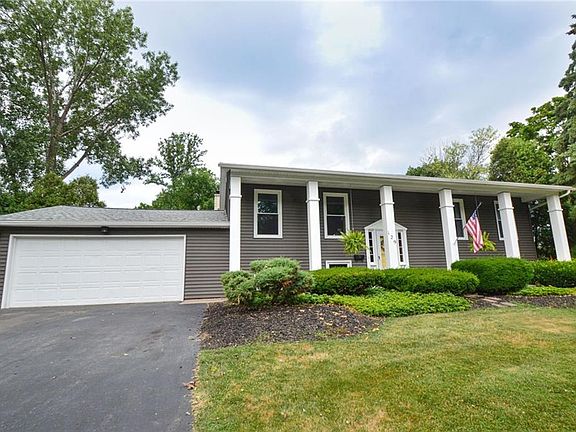 Show Stopper!!! Do not miss out on this pristine Move-In Ready Raised Ranch in Greece, boasting 4 bedrooms and 2 full baths. Updated kitchen/dining combination, with one of a kind tile countertops, stainless steel appliances (negotiable), 1st-floor living-room, updated bathrooms, first-floor bathroom updated 2019, Freshly painted 2020. Cozy up in lower level with wood-burning fireplace in family room, full updated bathroom with jetted bathtub and Master Bedroom. Newer mechanics include: Full Tear-Off Roof 2019, Siding 2017, A/C 2015, Hot water tank 2015, Thermal pane windows 2017, Boiler Furnace 15yrs (just cleaned and inspected), Nest Thermostat, Hardwood Floors 2017. The attached 2 car garage includes a 60MBH Lenox Furnace with full electric service, perfect for working in the garage. Relax in the fully fenced park like backyard with freshly painted shed, deck & patio. Sit by the new fire-pit and enjoy the serene sounds of your own water fall and pond. There is nothing left to do but move-in and enjoy this beautifully maintained home. Greenlight High-Speed Internet hard-wired. Close to shopping, restaurants and expressway. Delayed Negotiations Monday, July 20th at 6pm.