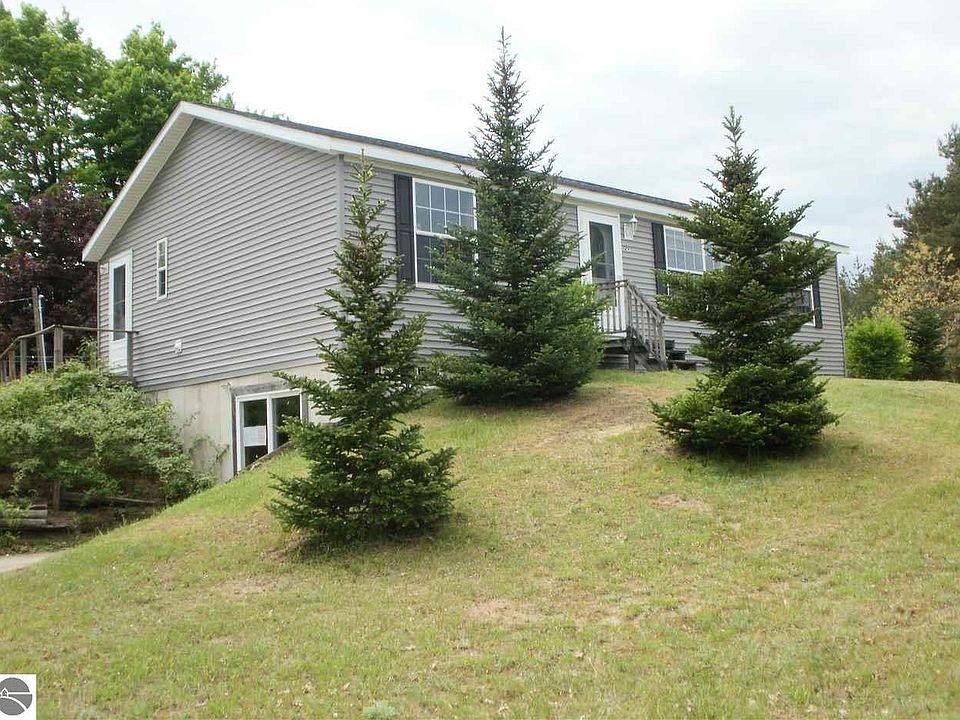 Conveniently located between Mesick and Manton with a short drive to Traverse City you will find this 3 bedroom 2 bath ranch style manufactured home on 10 acres. Full unfinished walkout basement, 30 x 40 pole barn with power and a 14 x 24 framed workshop. No title to older single wide and should not be entered. Sold As Is.