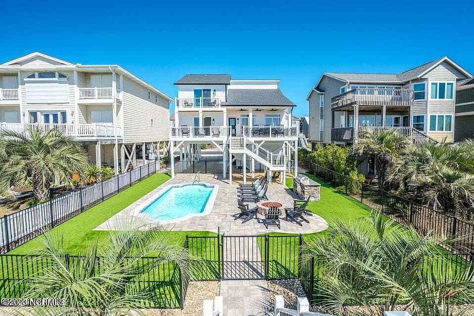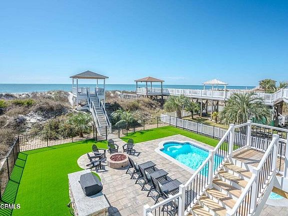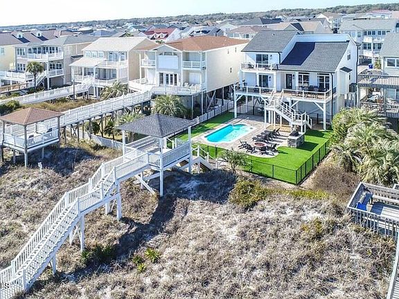 Wow! That is the word that comes to mind when describing this incredible oceanfront home on beautiful Ocean Isle Beach. This stunning home was completely renovated from top to bottom in 2022 and is one of the nicer homes on the island. This home has a long list of improvements but one that will grab your attention as soon as you pull into the driveway is the bright white new Hardie board siding trimmed out with black gutters, giving this home a modern curb appeal. Once inside the house, you appreciate the level of detail and thought that went into this renovation. The kitchen offers ample cabinet and countertop space plus a large, gas 6 burner cooktop. In addition to the dining table, which easily seats 10 people, there is overflow barstool seating in the kitchen. The spacious living room has large windows allowing natural light to come in & offers views of the ocean. There are 2 bedrooms on the main level, each with balcony access. Upstairs there are 3 more bedrooms including a huge bunk bed room. All 4 bathrooms in this home were completely redone with new vanities, new toilets and beautiful tile showers/tubs. If you enjoy entertaining large groups and hosting family gatherings, this backyard is for you! There is a brand new swimming pool with ample patio space around the pool for soaking up the sun, plus a very nice grilling station & fire pit. All of this is surrounded by state of the art artificial turf. On top of the dune, there is a large gazebo for watching the sunsets at the end of the perfect day at the beach. Both HVAC units were replaced in recent years. This home has been an amazing rental since the renovations were completed, rental history available.