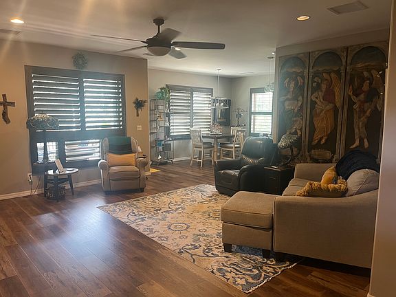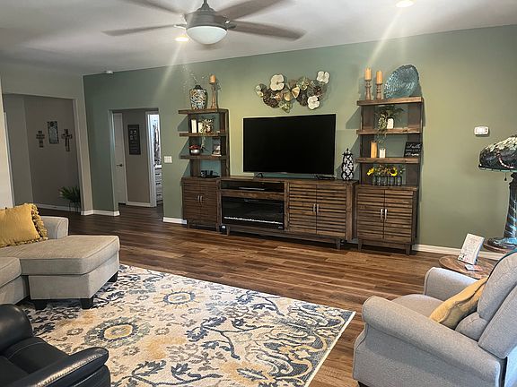 4 year old house. Partially Furnished, beds and dressers, couch, table and chairs, wall unit, 3 TV's, some decor. nice soaking tub. Walk in shower in the master bed room. Low maintenance yard. Fire pit. Nice patio. Owner pays for trash and sewer. Renter responsible for Electric and water. No smoking inside, please keep property clean and neat. There is a non refundable $200 Cleaning fee that will come out of deposit.