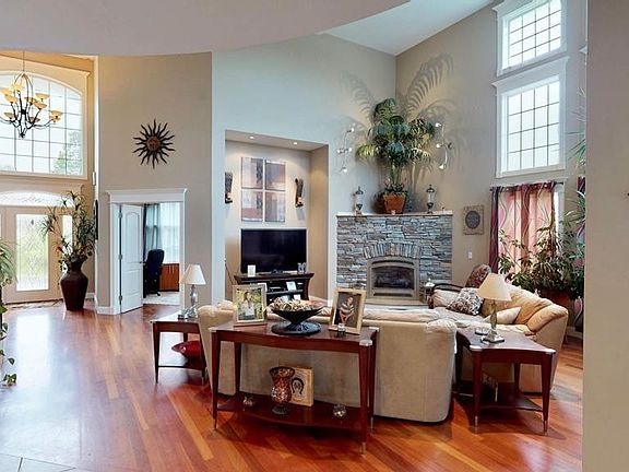 This breathtaking Colonial home is settled in a highly desirable neighborhood with stunning views. It boasts a grand entrance & family room with refinished Brazilian cherry flooring, curved staircase and 18' ceilings with stone gas fireplace. Custom cherry cabinets and professional appliances will make entertaining a breeze. The first floor includes a home office, half bath, laundry, and sun room that leads to your over sized deck and screened gazebo while the heated saltwater pool and waterfall relax you. The second-floor features the master bdrm en-suite that includes walk-in-closet, Jacuzzi tub, and steam shower. Two bedrooms share one full bath and have walk in closets and a teen suite with a private bath. Also included: Heated garage, with radiant heating piped throughout all tile areas and basement, 9ft basement ceilings with plumbing done for 5th bathroom. Theater is a must see with 10ft screen, high definition equipment, and soundproof walls. This house is a must see!