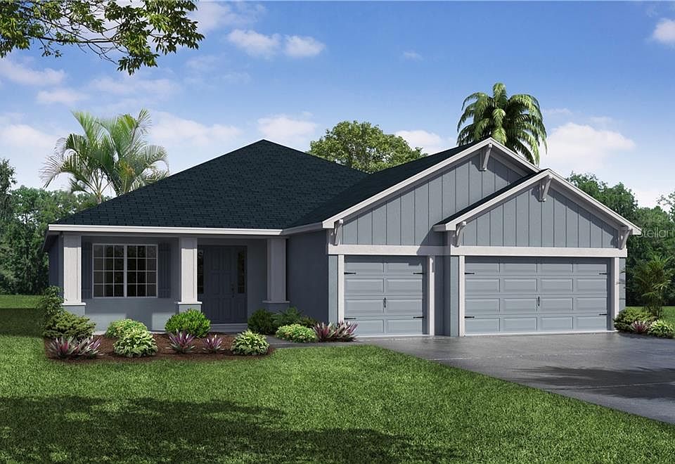 Under Construction. Introducing the Waylyn, a new Florida home plan by Highland Homes! With a traditional exterior, the Waylyn provides a classic-Florida look combined with the convenience of a modern designed interior. You will love the versatile rooms and the open living area comprised of a spacious gathering room, a casual dining cafe, and an open kitchen with counter-height island and walk-in pantry. Optional 5th bedroom in lieu of the den Drop zone at garage entry and foyer closet, to keep daily life organized Dedicated laundry room, Spacious owner's suite with an elegant tray ceiling, large walk-in wardrobe, and en-suite bath with a tiled shower, dual vanities, linen closet, and water closet Jack-and-Jill bath with entrances from bedrooms 2 and 3, including dual vanities and a private tub and toilet. Hall bath with pool door to the lanai and 9'-4" flat ceilings throughout, with a tray ceiling in the owner's suite. 8 ft. entry doors and sliding glass doors Covered lanai with access from the gathering room and hall bath Covered front porch