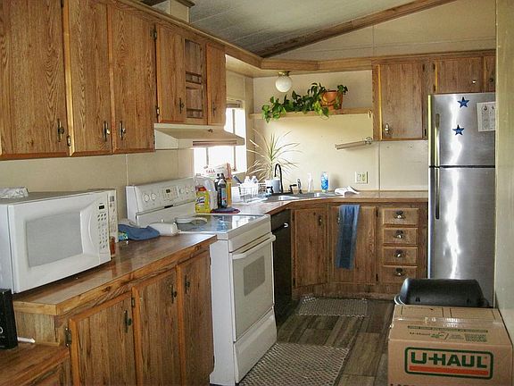 Set in a highly desirable all age park in Roseburg close to shopping, home improvement centers, restaurants and easy freeway access. This home has three bedrooms, two full bathrooms. The master bedroom will accommodate a king bed set and offers a large walk in closet. All the major appliances in the kitchen stay with the home. The huge utility room has washer and dryer hook-ups, a large pantry and additional overhead storage. This home has 1,274 Sq Ft, sits on a huge private lot at the end of a cul de sac and room for two vehicle parking. There are two large storage sheds but don't overlook the huge above ground pool that stays with the home! Sellers were in the process of starting home improvements but accepted employment out of the area. Bring your tools and your home improvement ideas: a great deal for a do-it-yourselfer.