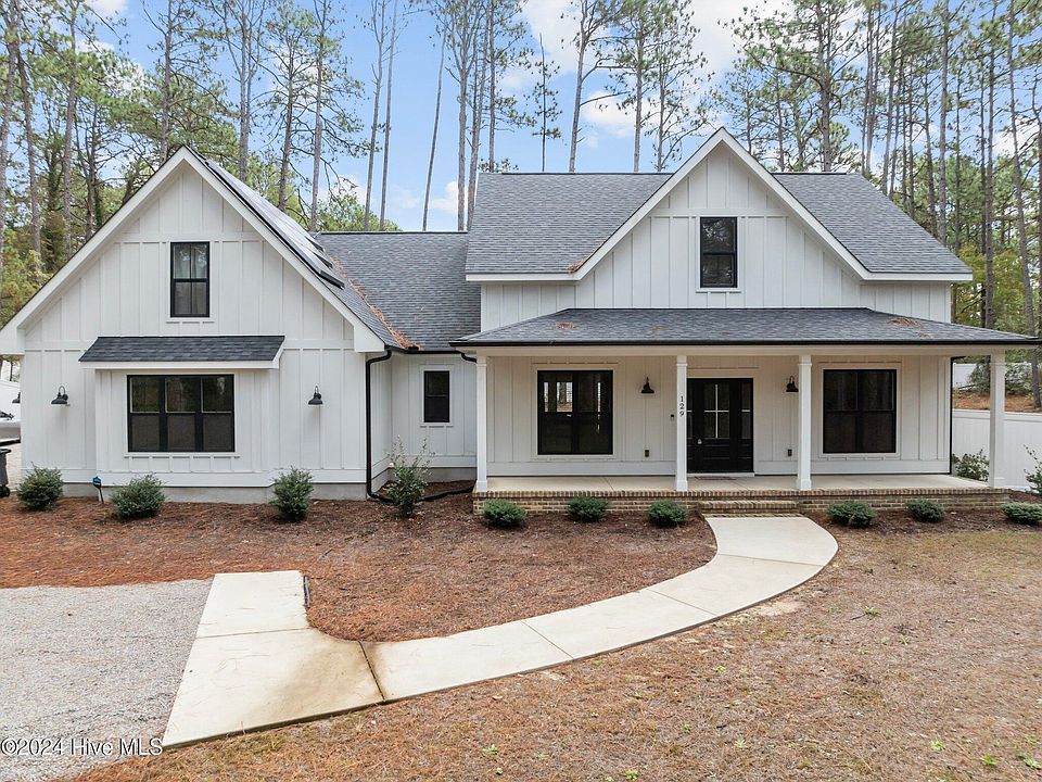 Welcome to your custom designed and built farmhouse style home situated on just under an acre in the heart of it all with tons of features that are sure to check every box on your list! Step inside and you are immediately greeted to this open floorplan featuring tons of natural light and straight line views to your large, fenced in yard. The formal dining area features coffered ceilings while your living room and free flowing kitchen area accented with vaulted ceiling and stained beams giving it the personal touch to welcome you home. The kitchen also features an oversized island, granite countertops, and is sure to be a great space to entertain! The spacious primary suite is certainly the perfect space to create your perfect retreat. Two bedrooms complete the downstairs and there is an additional bedroom w/bathroom located upstairs. Let's complete that checklist and cross off solar panels so you don't lose power and the garage being Tesla charger!