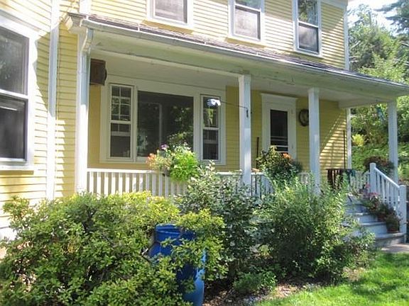 Serene setting for this light-filled Victorian on a 1.12 acre corner lot in the sweet community of Northfield. Enjoy sweeping seasonal views of open fields (future home of Thomas Aquinas College) and distant hills from the wrap around porch - a great way to end your day. There's a detached 2 car garage, shed for the wood and another for the chickens, extensive perennial and garden space, established fruit trees and berry bushes. Walk to golf and swimming at the Nfld Country Club and hike on nearby trails. Inside you will fall in love with the lg rooms, high ceilings, maple floors, wood stove hook-up with new liner, mud room, 2 full baths, 2nd floor laundry, and front and back staircases. Potential for a first floor bedroom. House has been fully insulated, so it's easy and economical to heat. High speed internet and good cell service make this a perfect home to work out of, and it's an easy commute to I-91, UMASS and Keene. Come see, come home!