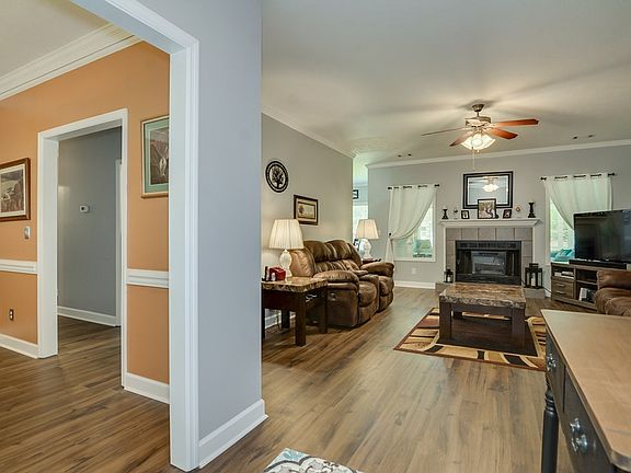 Perfect home nestled on 2.32 acres. Rocking chair front porch overlooks a huge front yard, foyer opens to formal dining room and family room with a wood burning fireplace. New LVT floors in the main living areas. Eat in kitchen has new stainless steel appliances. Bay window looks out to the backyard where you can watch all kinds of wildlife. Split bedroom plan. Owner's suite has an office, bath with dual vanities, dual closets, separate shower and jetted tub. Plus bonus room with half bath upstairs that could be a 4th bedroom with a large walk in closet. Large sunroom off of the breakfast area opens to a covered porch. Above ground pool is just a year old. Large detached workshop has enclosed storage area as well as covered area large enough for your RV, boat, or whatever. Privacy fence across the front with a double gate. 2 car garage plus an additional covered parking area off the driveway. Location is convenient to shopping, schools, and I-20