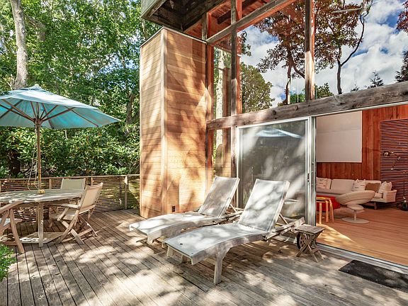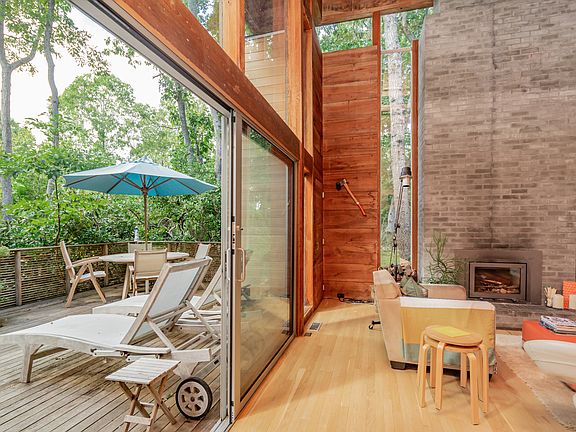 Rental Registration #: 24-752 Bates Masi's renovation and expansion of Harry Bates's 1967 house in East Hampton, New York, salvaged much of the home's original cypress decking and incorporated subtle additions to the exterior. The main living area boasts skylights that allow for just perfect light filtering in. The interior has a slatted motif throughout reminiscent of a ship. This home has been published in numerous design magazines both for it's thoughtful renovation and for it's timeless design. From Dwell - "This sleek kitchen hits warm notes with red lacquered cabinetry, cypress woodwork, and a leafy backyard vista...The extra space from the stairway addition allowed for an equally wide, handsome blue sandstone shower. The blue sandstone, which hails from northern New York, is one of three elements chosen for their minimal palette. The patio, kitchen, and bathroom run together along an east-west axis, each room bearing a different finish of the same blue stone. This allows for a subtle contrast in texture, but it also carries the overall theme throughout the space, making it feel more expansive yet sharply defined." There is beach access for residents of Barnes Landing just a quick moment away.