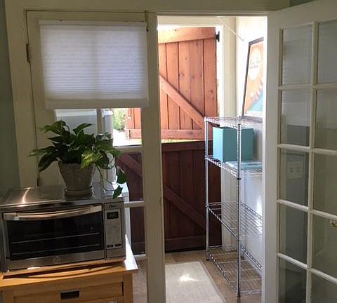 Humming Bird Cottage: Private and peaceful 1 bedroom guest cottage fully landscaped and maintained . All utilities are included, also Wi-Fi . Separate cottage from main house, private entrance. Lush carpet, new windows, window treatments ,quartz counter tops. Light cooking with Pullman style kitchen. Very clean, bright and cheery. Stackable Washer/dryer included . Best suited for quiet, single professional person. May consider small, older well behaved dog. No smoking & no drugs. 1 year lease. All utilities are included, also Wifi