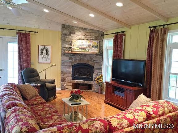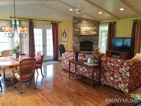It will charm the socks right off your feet the minute you step into the room.Open bright & cheerful layout sparkling at every turn.Get comfortable in this Great Room addition featuring cathedral ceiling,gleaming hdwd floor & a propane stone fireplace.Also features a heated Sunroom addition w/cathedral ceiling, wdstv,ceramic flooring all in a panoramic windowed setting.Updates inc a full bath w/garden tub & standing shower w/tasteful decor.Enjoy the trex deck covered porch & 3.8 country acres