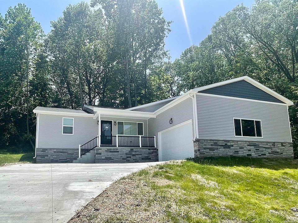 NEW home on the East side of Bedford with three bedrooms and two and a half baths! Den/office has the potential to add a fourth bedroom if needed. Massive eat in kitchen with tons of cabinetry, show stopping granite tops and a large island are just the beginning of the luxury feel this property provides. The primary bedroom features a spa-like bathroom with a freestanding tub and walk in tile shower! Cathedral ceilings make the living space feel extra spacious.