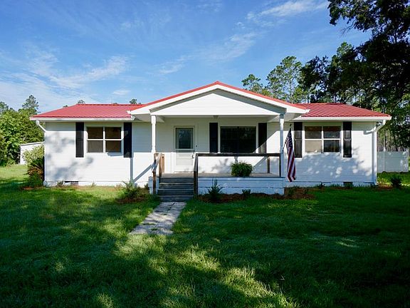 This house has it all ! Recently renovated 4 bedroom/ 3 bath on a one acre lot in the country. 25 x 40 metal workshop with double electric garage door openers, in-ground pool, storage building for lawn equipment, and a separate building that could be a play house or hobby room. House has laminate flooring, and 2 bedrooms with carpet. Great kitchen with custom cabinets! Large back porch has 2 screened-in areas and overlooks the in-ground pool and back yard. Newer red metal roof makes this house pop! Well pump is new! A large partially fenced back yard is perfect for a horse or other animals. This is a great combination of home and accessories, and is located about 6 miles south of Lake Park. Come see!!