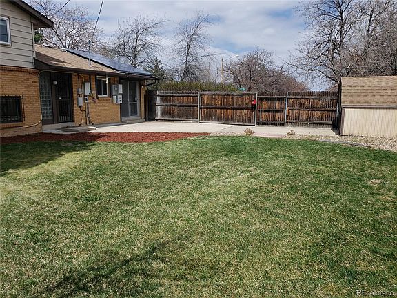 Home has electricity provided by Solar City photovoltaic roof panel system. Monthly electric bill runs about $50-$60. Lease transfers to new buyers upon closing. Very charming home that is close to Children's Hospital, the new VA Hospital, University Hospital, RTD bus system, RTD light rail station, all shopping services, Elementary and Middle Schools are an easy walk for the kids. There are 2 storage sheds and a third car parking apron in front. The landscaping is really nice; lots of mature and well cared for trees, front and rear sprinkler systems and a large patio for family dining with a large back yard all fenced for privacy and security. Inside is ready ready ready. New engineered wood floors in Living Room, Dining Room and Entry. Tile floor in the almost new IKEA designed kitchen (with Stainless Steel Appliances). All the windows have been replaced with vinyl double pane windows and all have recently installed cellular blinds that stay where you set them with just a gentle touch. New carpet throughout the upstairs (bedrooms and hall) and in the lower level in the cozy family room. The entire interior has been freshly painted, including the doors. All interior hardware is new (brushed nickel finish) and the main bath has been totally remodeled and tiled floor to ceiling. The garage may not be glamorous but is mostly finished, painted, pressure washed and has an included 2nd side by side refrigerator/freezer.