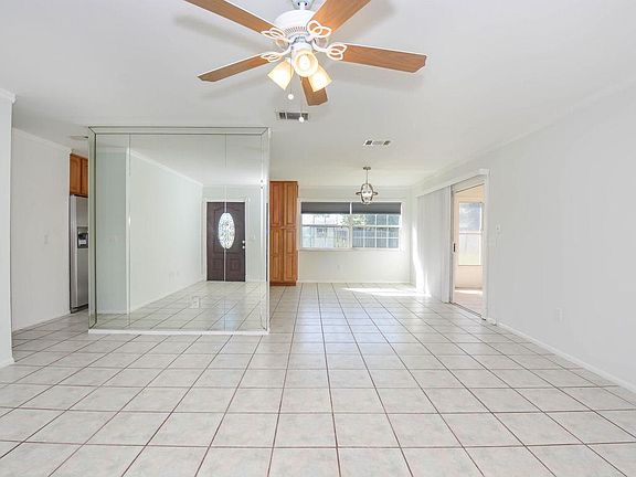 This delightful, move-in ready home has an updated eat-in kitchen with Corian counters, real wood cabinets and new stainless appliances. Tile floors throughout the entire home including the large, trussed roof patio featuring sliding windows and a lighted ceiling fan allowing you to control the environment. The garage was converted into a versatile 13 x 11 room that's perfect for a 4th bedroom, home office or play room. Updated bathrooms, lighted ceiling fans in all bedrooms and indoor laundry hook-ups complete the home. The fully fenced backyard, of this oversized .26-acre lot, contains a huge shed with electricity and has plenty of room for you to create your own tropical oasis. Connected to city water and sewer, this charming home has everything you need to achieve an affordable dream.