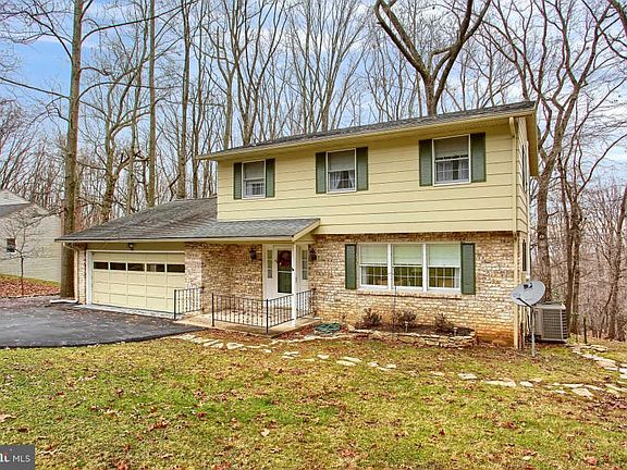 Peace and quiet await at this 2-story traditional home in White Rocks Acres! Situated on over an acre of land in the Cumberland Valley School District this home features 4 bedrooms and 2.5 full bathrooms. The first floor offers a tiled foyer entrance, newly carpeted living room, half bath, and family room with brick fireplace and exposed beams. The kitchen and formal dining room boast a beautiful brick wall, with arched throughway. Located on the second floor are the master suite and three additional bedrooms, all with crown molding detail, and a second full bathroom. Fresh paint throughout. The finished walk-out basement includes exposed beam detail and a workshop area. The picturesque lot hosts beautiful forest and stream views, perfect for enjoying from the screened-in back porch!