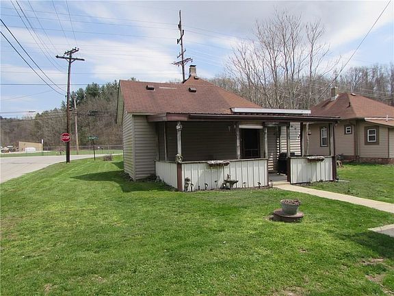 Cute 2 bedroom home just out of town with large 576 sq ft pole barn/garage built in 2003! Large eat in kitchen. Lots of storage. Seller has replaced most windows and made several other improvements but some work is still needed. Enclosed front porch and newer covered back porch. Corner lot.