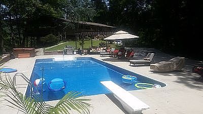 Deck house with exposed mahogany beams and tons of windows. Two story pool house with full kitchen and bath. 1700 sq ft deck with outdoor kitchen.