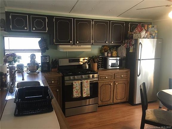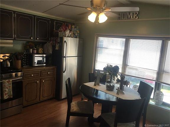Why rent when you can own? Very economical heating with propane in this conveniently located 2 bedroom 1 bath mobile home which includes "newer" kitchen appliances and laminate flooring throughout. Open living room into the kitchen eating area; two comfortable bedrooms, laundry hook-up will accomodate YOUR stackable washer & dryer. Park approval is required. 4x6 outside storage unit is their gift to you!
