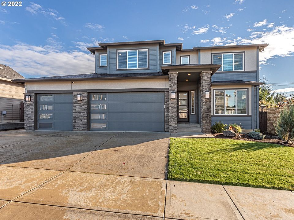 Luxury abounds in this gorgeous New Traditions built home in quiet neighborhood. High end finishes throughout including shutters and wood blinds and luxury laminate flooring. Features main floor guest suite(2nd primary), luxurious primary suite up. Spacious floor plan with great room, den,2 dining areas,large bonus/5th bedroom with closet. Built in vac system ,ring doorbell, nest thermostat, built ins, tankless water heater, 95% furnace,2 sheds. Close to schools, shops, outdoor rec cntr ,fwy.