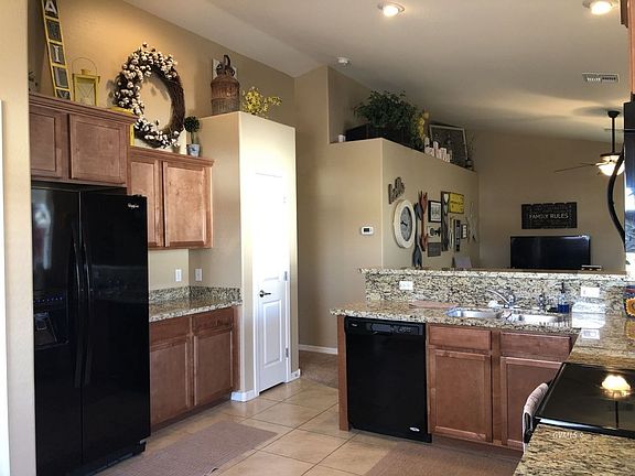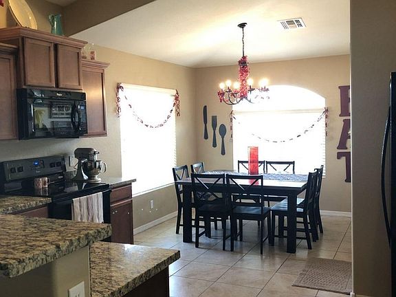Welcome home to this beautiful 3 bedroom, 2 bathroom home! Open the front door to the open living room and kitchen concept. Vaulted ceilings throughout the open area amplifies the space with plant shelves that add character by allowing you to decorating touch. Kitchen has beautiful upgraded granite counter tops and plenty of cabinets with a pantry to store your kitchen gadgets and food! Plenty of windows in the kitchen and dining room to allow the morning sun to light up the area. Master bedroom includes upgraded bay window to add more space and a walk-in closet. You'll find upgraded light and plumbing fixtures throughout the home. Sliding glass doors from the living room provide easy access to the back patio which includes a very tall back wall. The backyard allows for easy maintenance with the installed artificial grass, rock landscape, and automatic drip system. Schedule an appointment to see this beautiful home in person!