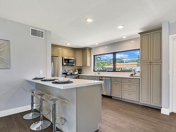 Motivated seller! Bring all offers. Gorgeous 3 bedroom 2 bath home in East Boca Raton. Renovated kitchen with quartz counter tops, wood cabinets, updated bathrooms, and floors through entire home. Updated electric wiring throughout home. Open floor plan is light and bright. A portion of the garage has been legally converted to third bedroom and can easily be converted back if buyer prefers. FULL home HURRICANE SHUTTERS including GARAGE DOOR and ALL SLIDING GLASS DOORS. Front door and Laundry room doors are steel out-swing hurricane rated doors. Recently replaced hot water heater. Pool recently resurfaced with Diamond Brite. New pool pump, filters, timer, and cleaning system Walk to Addison Mizner elementary. close to everything! minutes to 95, beaches, and downtown. Priced to sell!