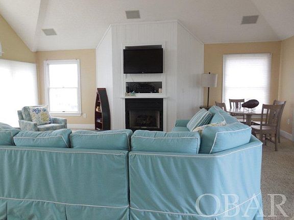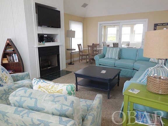 Step into this fun semi-oceanfront home with 6 bedrooms, 5.5 baths and great views of the ocean and enjoy the reversed floor plan with living area on top floor with master bedroom and bath. The gas fireplace will warm your cool nights and the living room has ample seating. The kitchen has granite countertops along with a wet bar. Four bedrooms on second floor and a bedroom and bath on ground floor with foos ball table. Step outside to the swimming pool and hot tub, beach access across the street. Short walk to the community beach access and community pool. There is another community pool, health club and playground on the sound side. This community and home is the fun place to be!