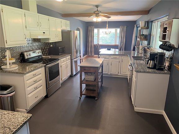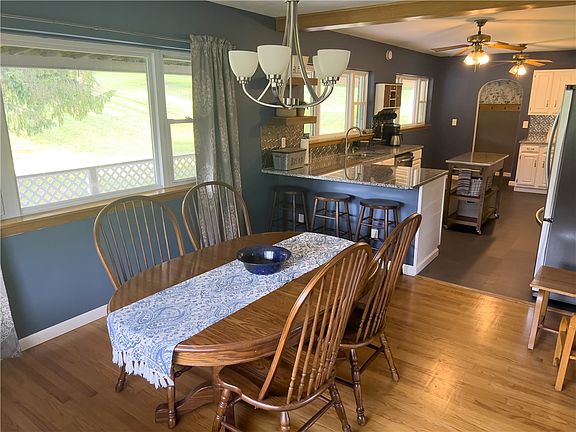 Many updates have been completed to this one story brick home situated on just over an acre of land! Modern eat-in kitchen, spacious living room with woodstove, three spacious bedrooms with master and en-suite bath. Hardwood floors throughout! Abundant natural light throughout! Full basement offering plenty of storage and garage. Covered deck overlooking nicely manicured lot. New roof, updated electric, paved drive, storage outbuilding.